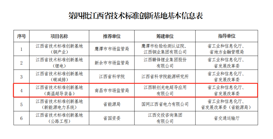 克日,省市场羁系局印发《关于赞成筹建第四批江西省手艺标准立异基地的通知》,赞成江西联创光电超导应用有限公司牵头筹建江西省手艺标准立异基地(高温超导装备),这是我市获批筹建的第2个省级手艺标准立异基地项目。